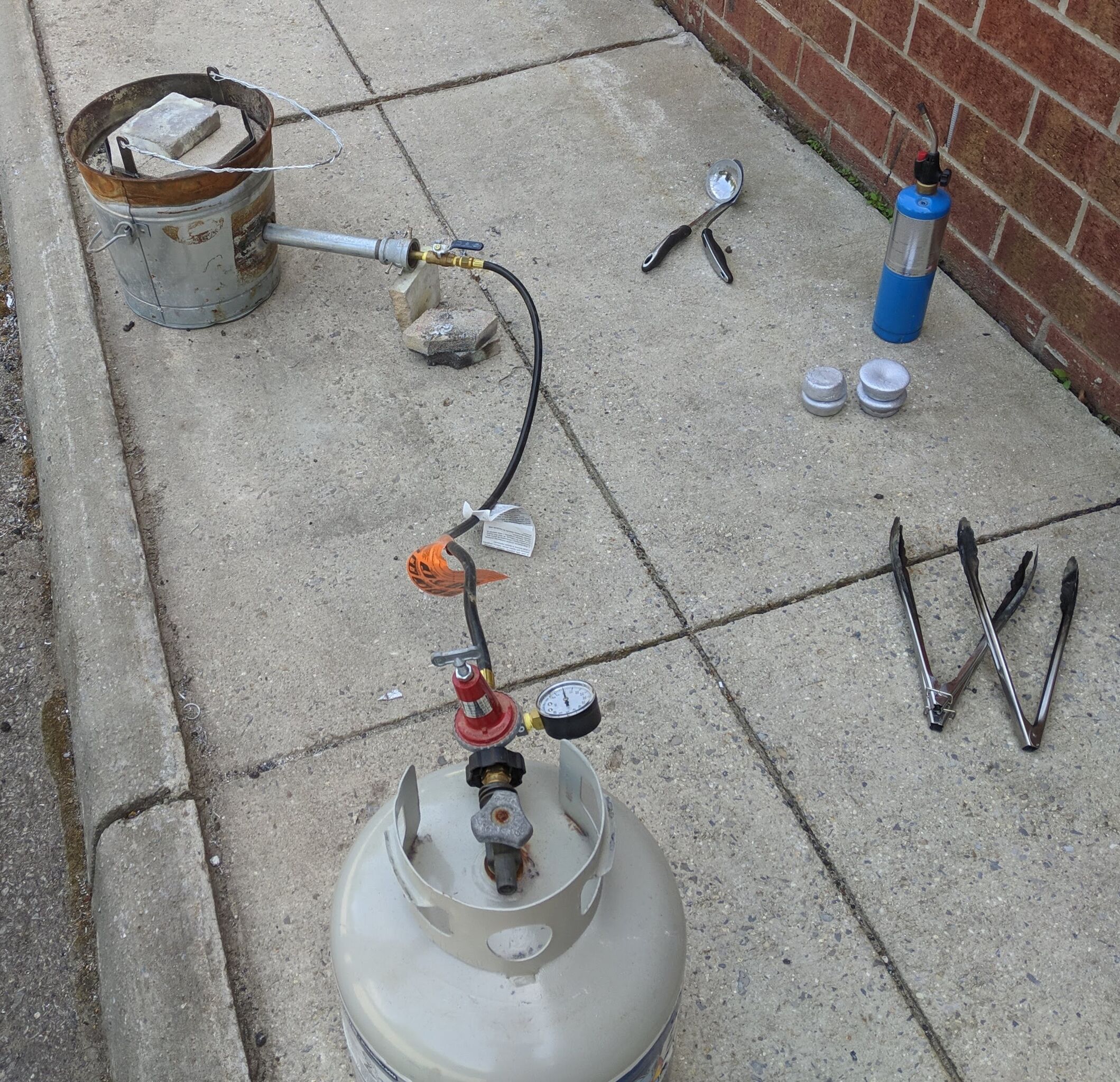 current21:05, 5 September 2019Thumbnail for version as of 21:05, 5 September 20192,570 × 2,484 (1.41 MB)Webmaster (talk | contribs)Metal Casting Furnace * Propane powered furnace (tested with aluminum and brass) * 2x Ceramic Crucibles * Casting sand and frames * Lifting tongs