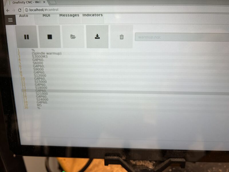 The warmup program used for the Onefinity spindle